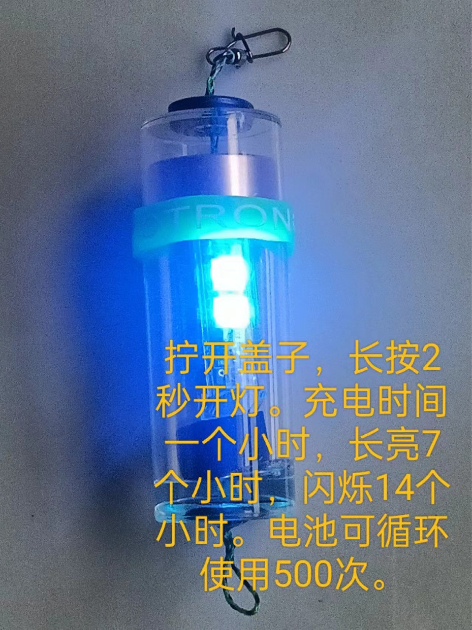 Lampu memancing elektrik khusus sederhana cahaya biru malam. Lampu senter baterai bercahaya, lampu memancing, pengisian daya sama, lampu malam kuat