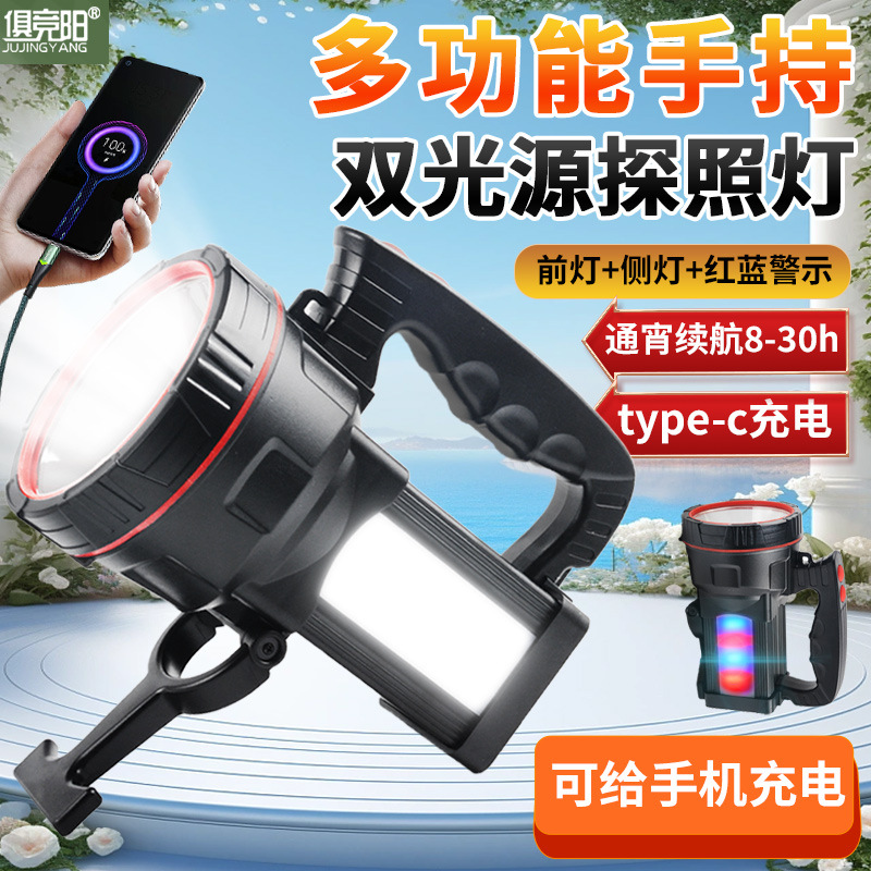 Cross-border lampu merah kuning putih multi-fungsional baru lampu sorot LED portabel daya tinggi lampu patroli luar ruangan lampu berkemah