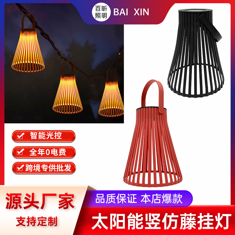 Lampu surya retro bambu, lampu luar ruangan tahan air suasana lampu gantung halaman taman balkon lentera seperti rotan
