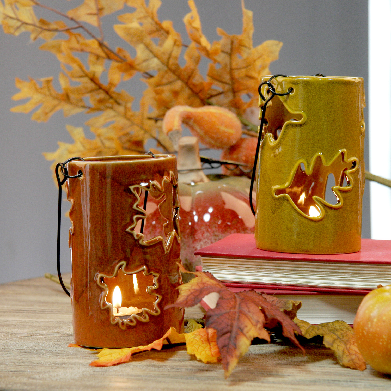 Tata letak kamar tidur dekorasi ruang festival Thanksgiving kerajinan lampu portabel desktop daun Maple berongga dekorasi tempat lilin