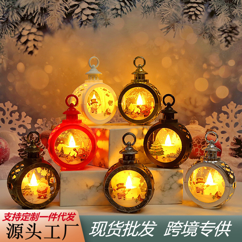 Lampu portabel anak-anak, lampu Angin bulat Natal lintas batas Dekorasi desktop tata letak manusia salju Santa Claus