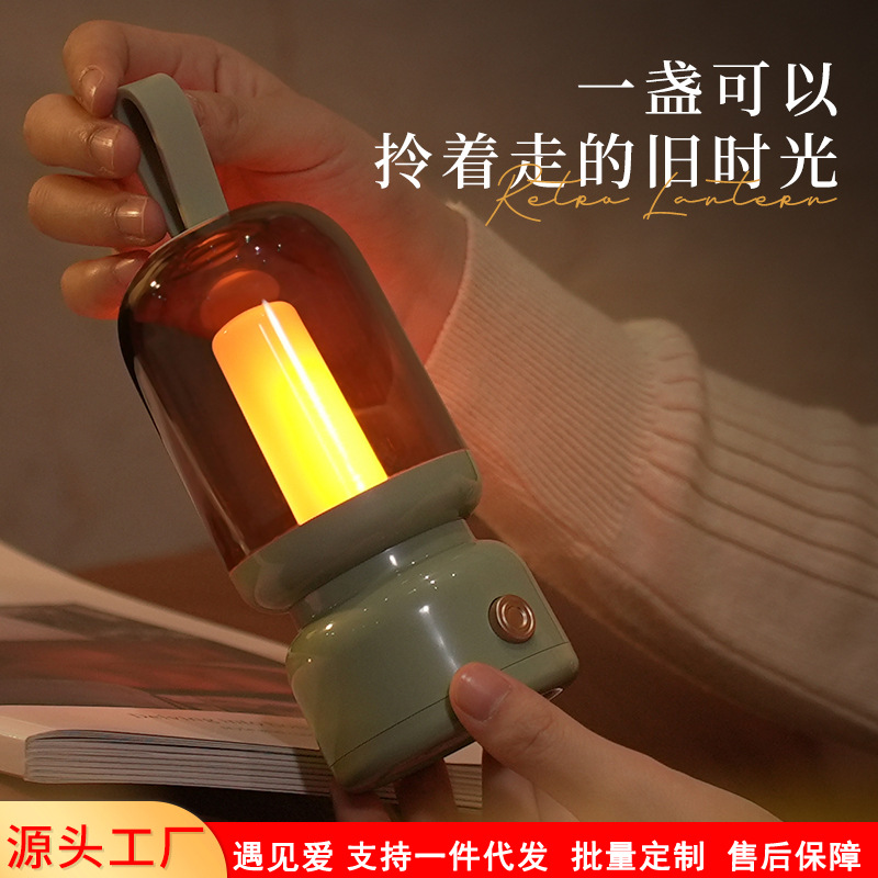 Lampu Portabel Retro Produk Baru Lintas Batas Model Pengisian Daya Luar Ruangan Lampu Lilin Ornamen Cahaya Malam Hadiah Ulang Tahun