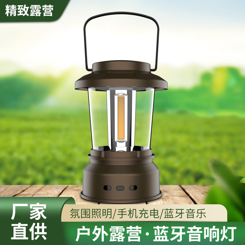 Lampu tenda gantung audio Bluetooth, lentera berkemah luar ruangan portabel aluminium Aloi retro dapat diisi ulang