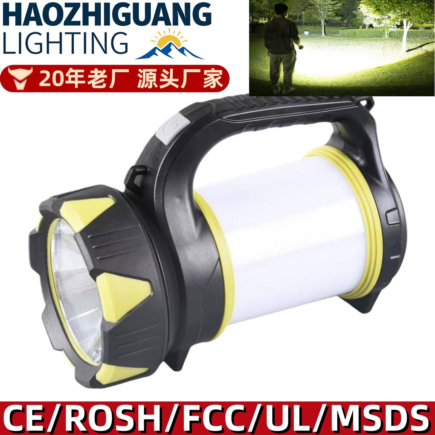 Lampu senter kuat dapat diisi ulang, cahaya sorot portabel jarak jauh multi-fungsi, sangat terang luar ruangan dengan lampu samping
