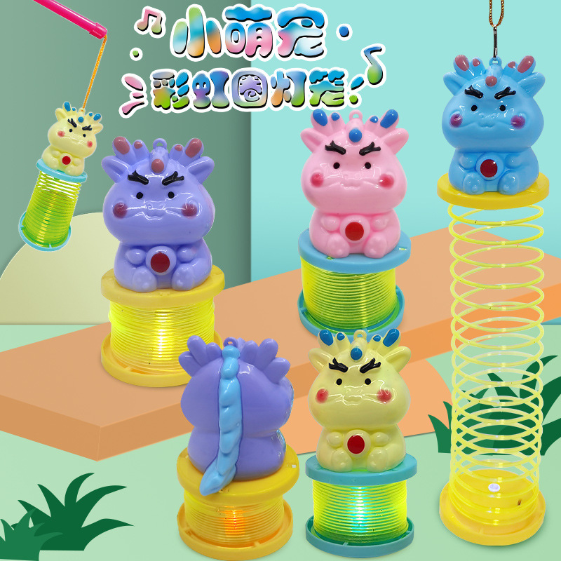 Lampu portabel cincin pelangi Tahun Naga, lentera portabel anak, kartun dinosaurus lucu, lentera Tahun Baru