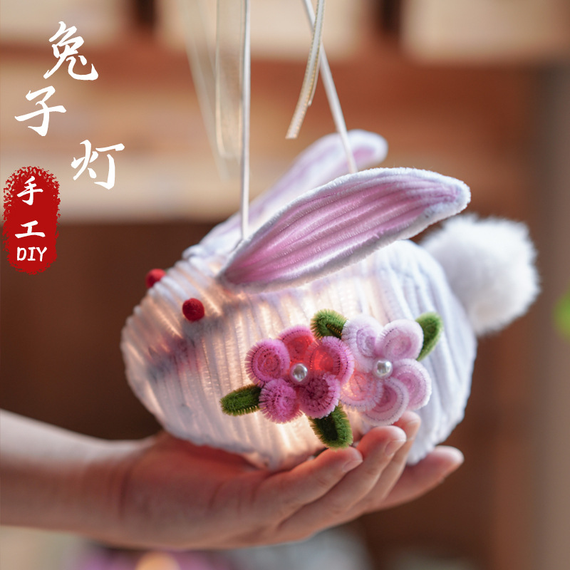 Twisted stick jade Kelinci lampu portabel diy bahan paket buatan tangan buatan rumah anak portabel lentera gaya kuno Pertengahan Musim Gugur festival lentera