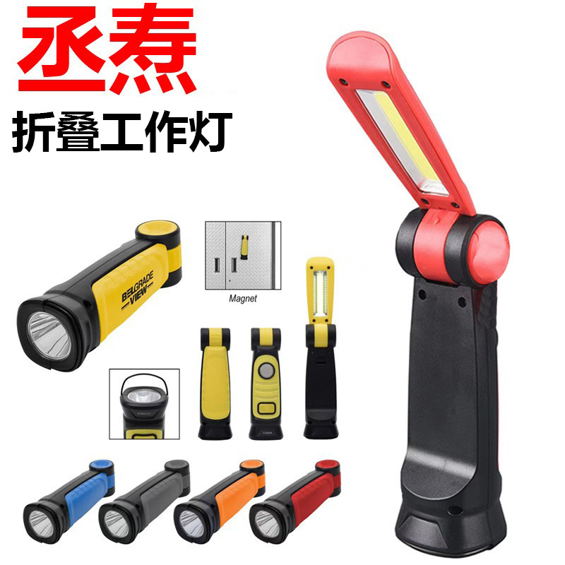 Lampu lipat led lintas batas, lampu palu keamanan, senter inspeksi cahaya kuat sumber cahaya ganda magnet kuat