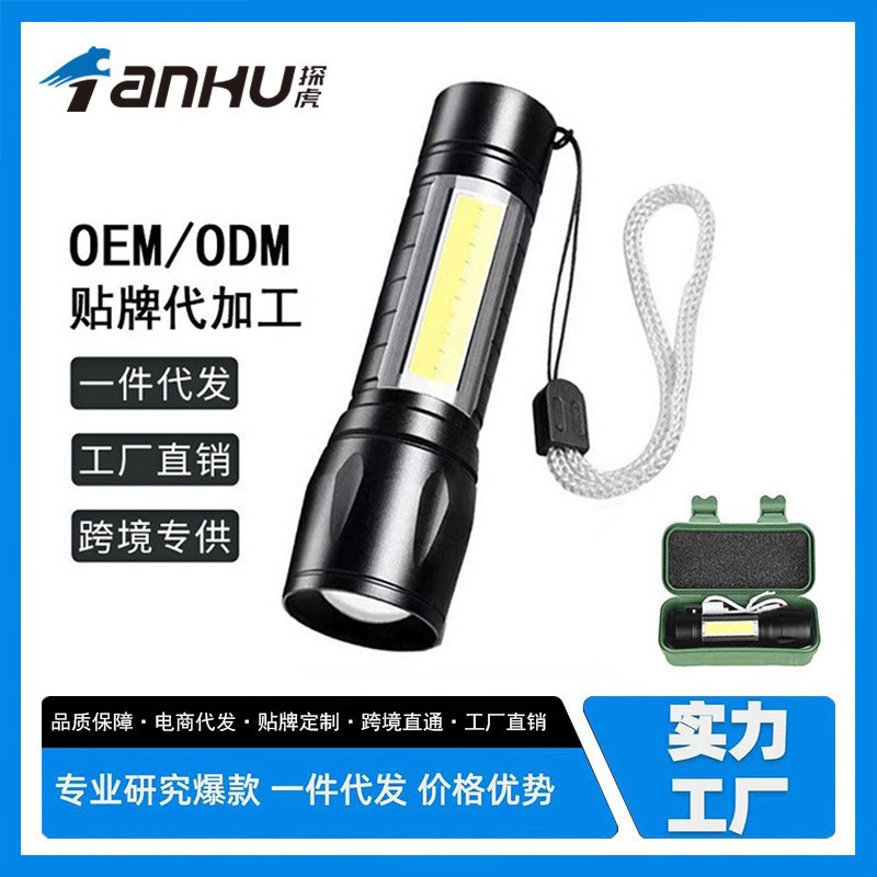 Senter teleskopik paduan aluminium lintas batas, lampu samping COB pengisian daya teleskopik, Senter multifungsi, lampu luar ruangan, lampu kuat
