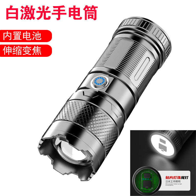 Senter laser Putih lintas batas, senter darurat perbesaran remote luar ruangan, senter laser paduan aluminium grosir