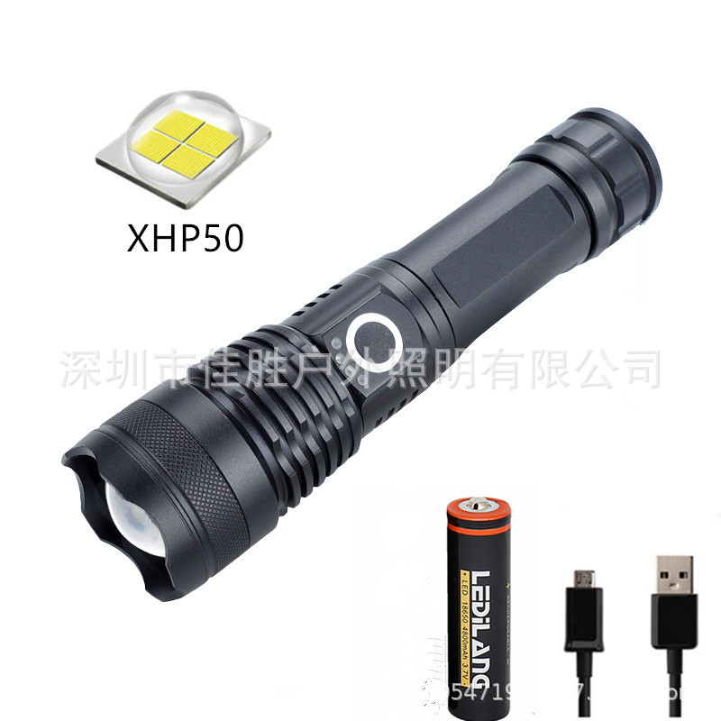 P50 senter jarak jauh, senter luar ruangan zoom teleskopik aluminium Aloi, cahaya kuat lintas batas baru