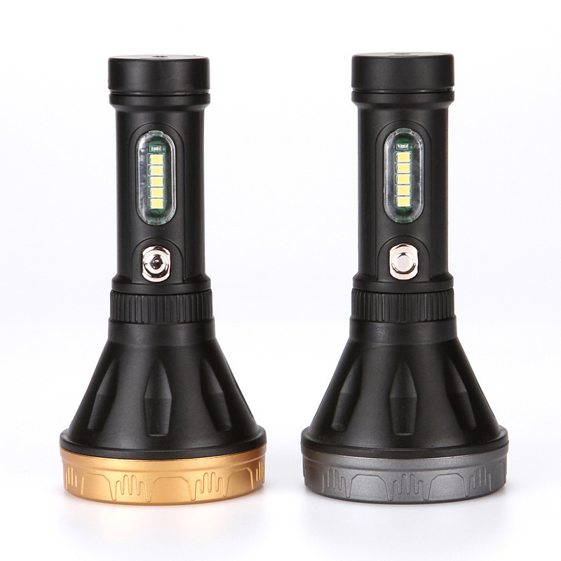 T6 senter menyelam luar ruangan plastik portabel, lampu senter LED 18650 pengisian daya ringan kerja langsung dari pabrik