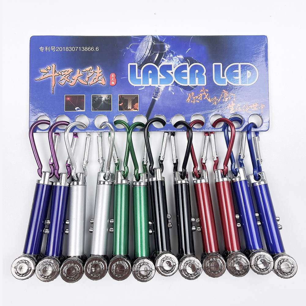 Produsen menyediakan senter genggam luar ruangan rumah biru dan hijau senter mengajar pena cambuk hadiah tanda penjualan