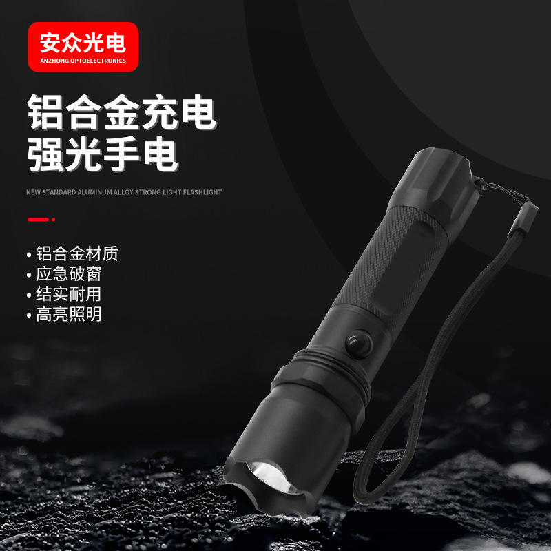 Senter LED tenaga tinggi, senter luar ruangan, daya tinggi, logam campuran aluminium, tahan air, lampu memancing malam, senter pegangan tangan dapat diisi ulang
