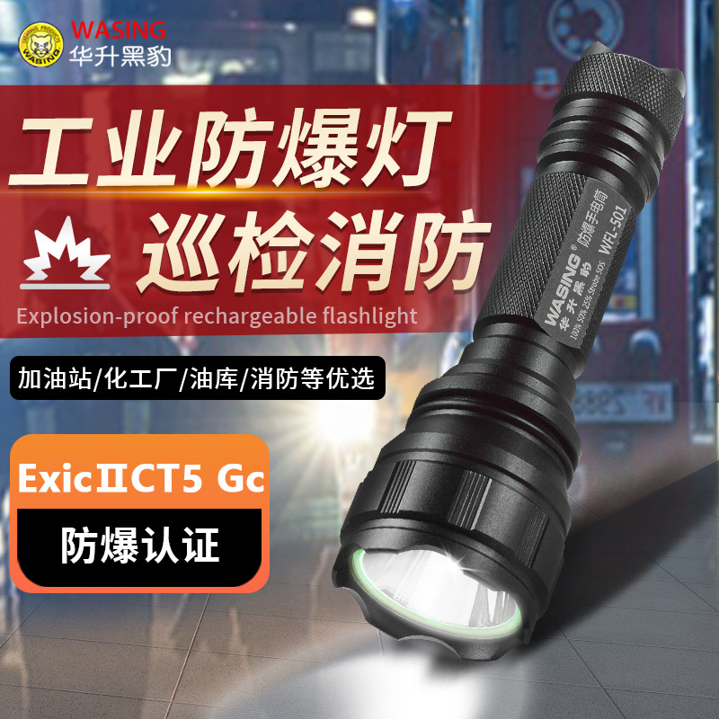 Huasheng WFL-501 macan tutul hitam, Senter LED tahan ledakan jarak jauh dapat diisi ulang untuk keamanan kerja patroli