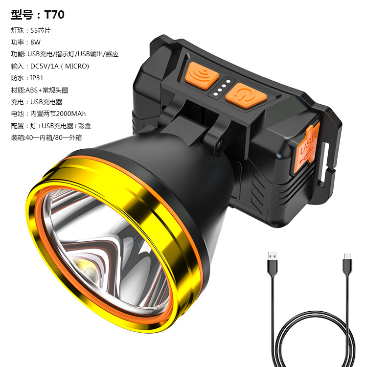 Grosir LED luar ruangan memancing malam tembakan panjang induksi pengisian darurat lampu kepala penambang memancing liar lampu probe lithium senter dipasang di kepala