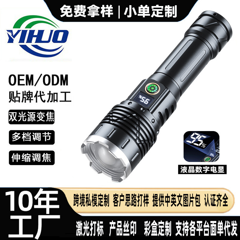 Senter laser Putih power display tipe-c pengisian cepat zoom remote luar ruangan senter pabrik grosir