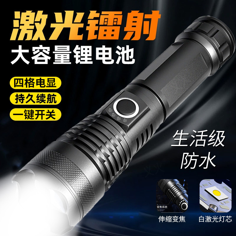 Senter Cahaya Kuat Lintas Batas Tipe Genggam Laser Zoom Super Terang Jarak Jauh Dapat Diisi Ulang Model Portabel Rumah Tangga