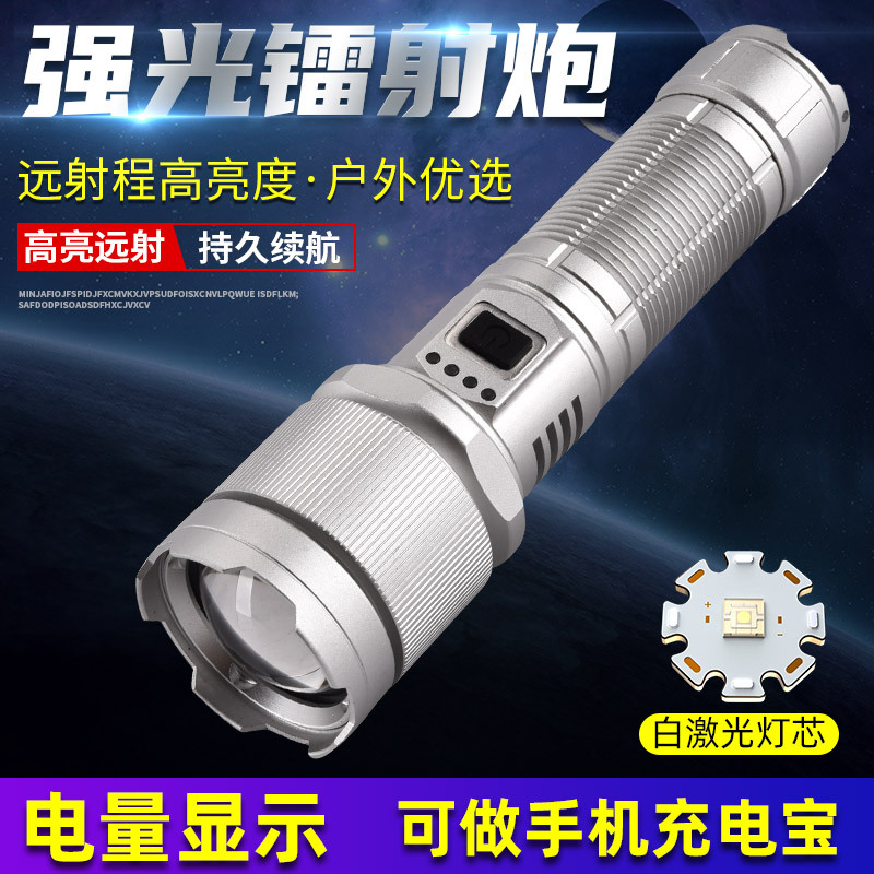 Tiktok senter LED laser putih, lintas batas cahaya kuat multi-fungsi TYPE-C mode cahaya ganda pengisian daya
