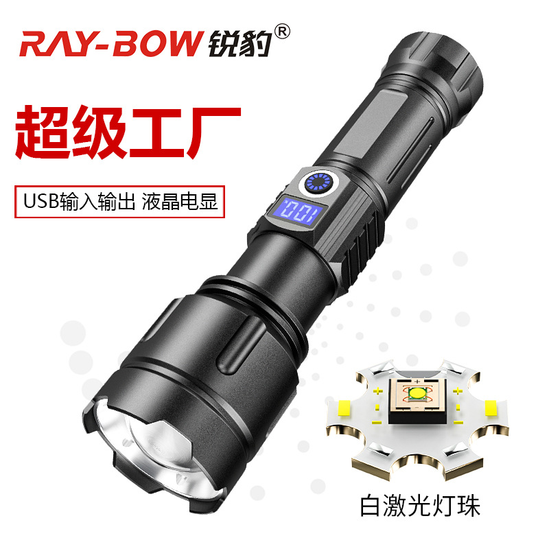 Diskon besar Amazon senter laser Putih tampilan daya LCD senter output dan input USB zoom 30W