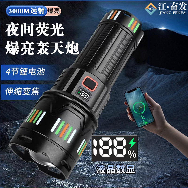 Lampu senter digital layar neon lintas batas multi-fungsi luar ruangan lampu kerja genggam perbaikan darurat lampu senter zoom teleskopik