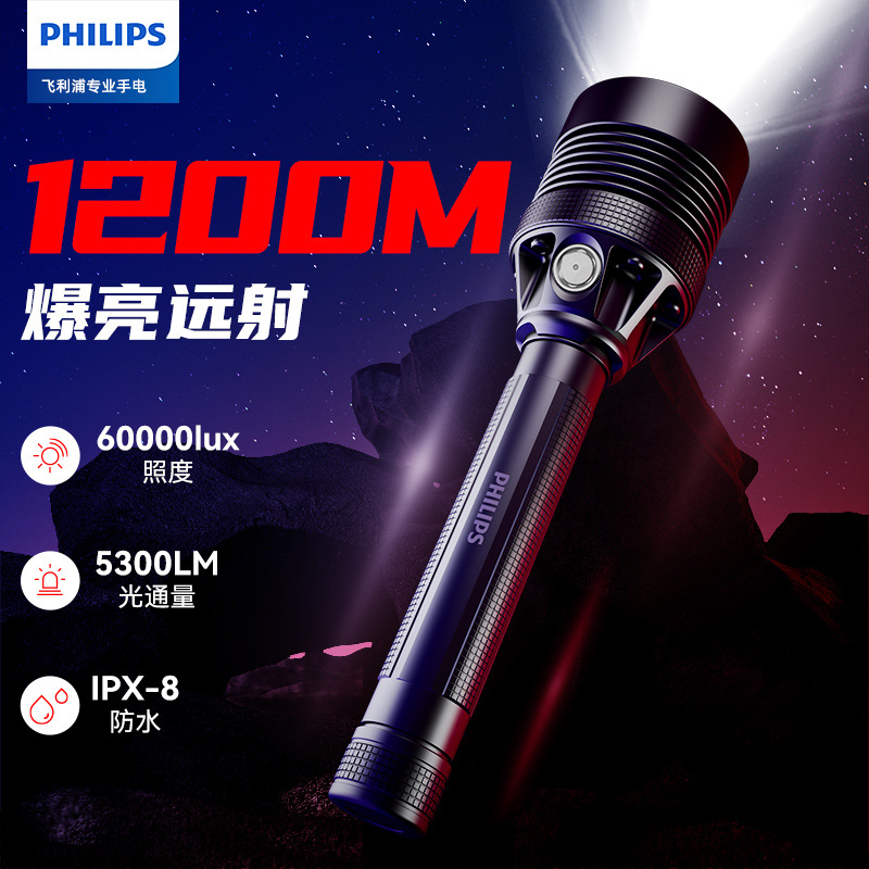 Senter Philips SFL1236, senter lampu luar ruangan kuat, senter isi ulang daya tahan ultra-panjang portabel