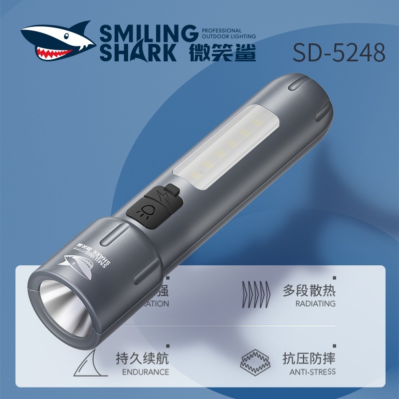 Smile Shark Lampu Charger Portabel LED Lampu Charger Lampu Senter Portabel Senter Jarak Jauh Senter Portabel Senter Kecil Portabel
