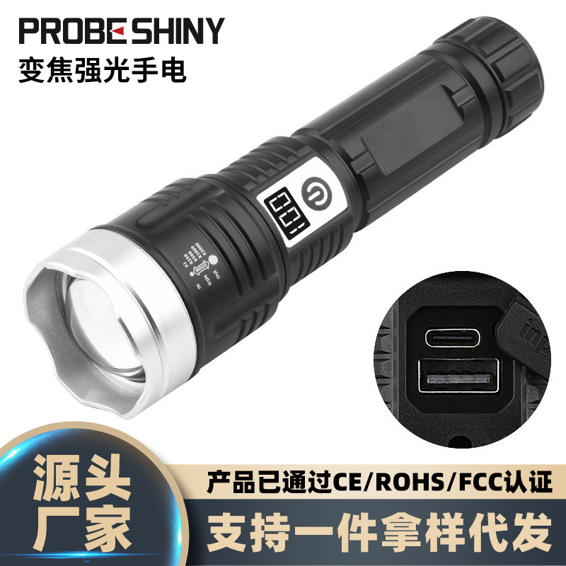 Cross-border senter laser putih portabel, lampu kuat dapat diisi ulang luar ruangan tembakan jauh super terang zoom led rumah tangga