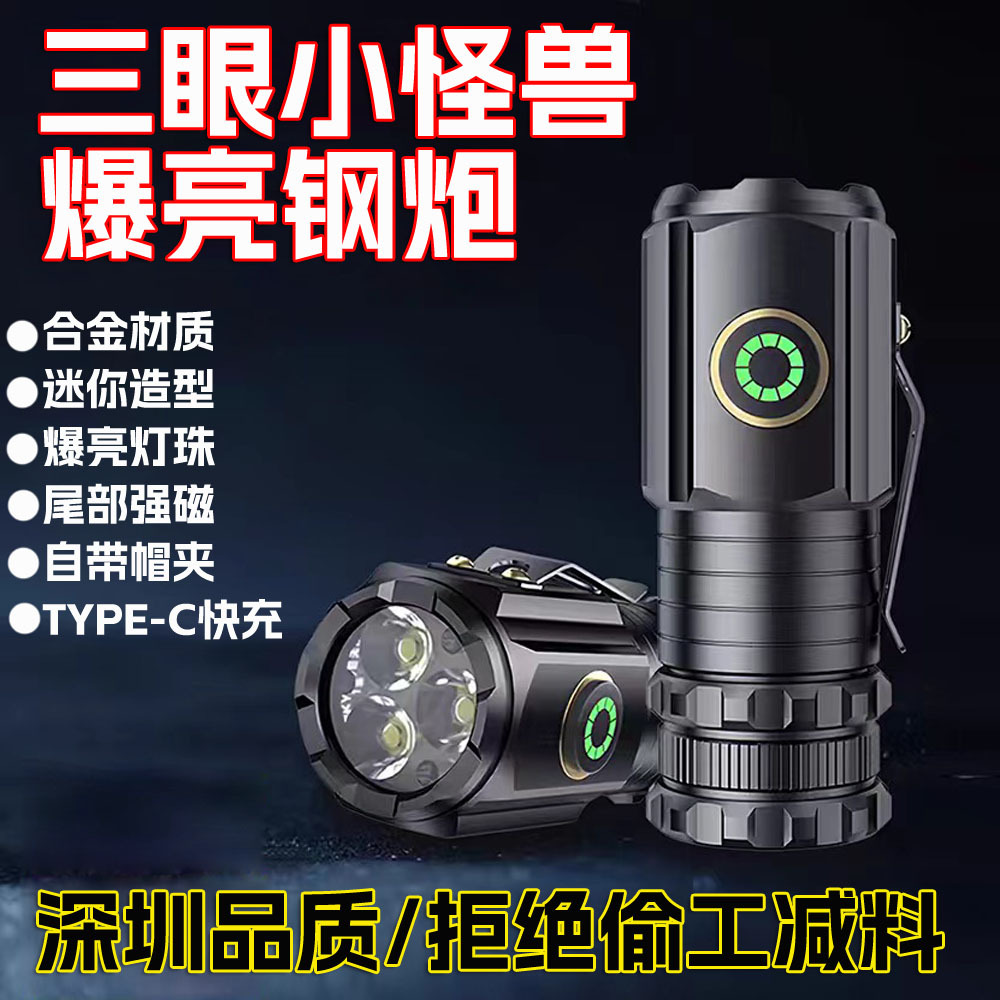 Senter Cahaya Terang Tiga Mata Lampu Senter EDC Paduan Aluminium Isi Ulang Luar Ruangan Anti Tubuh Mini Lampu Senter Kuat