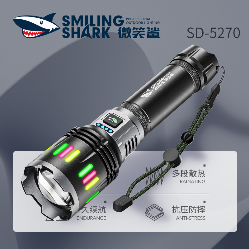Senter Jarak Jauh Zoom Teleskopik Hiu Tertawa Outdoor Output Dada Luar Ruangan 5-stop Senter Cahaya Terang Paduan Aluminium