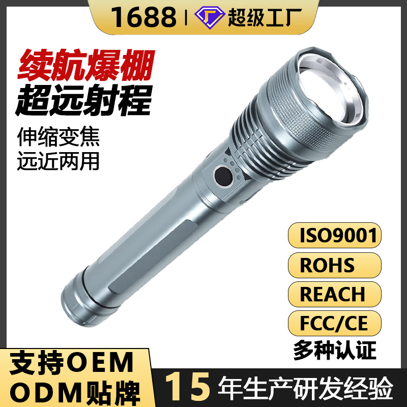 Lampu senter led kuat lintas batas, lampu samping portabel rumah tangga super terang portabel jarak jauh multi-fungsi dapat diisi ulang
