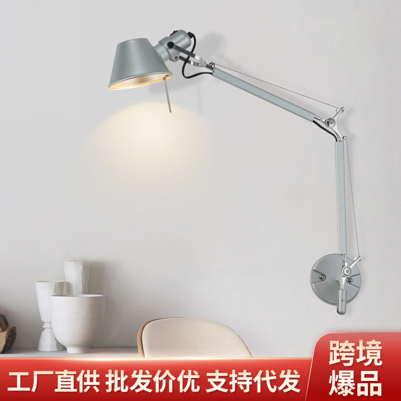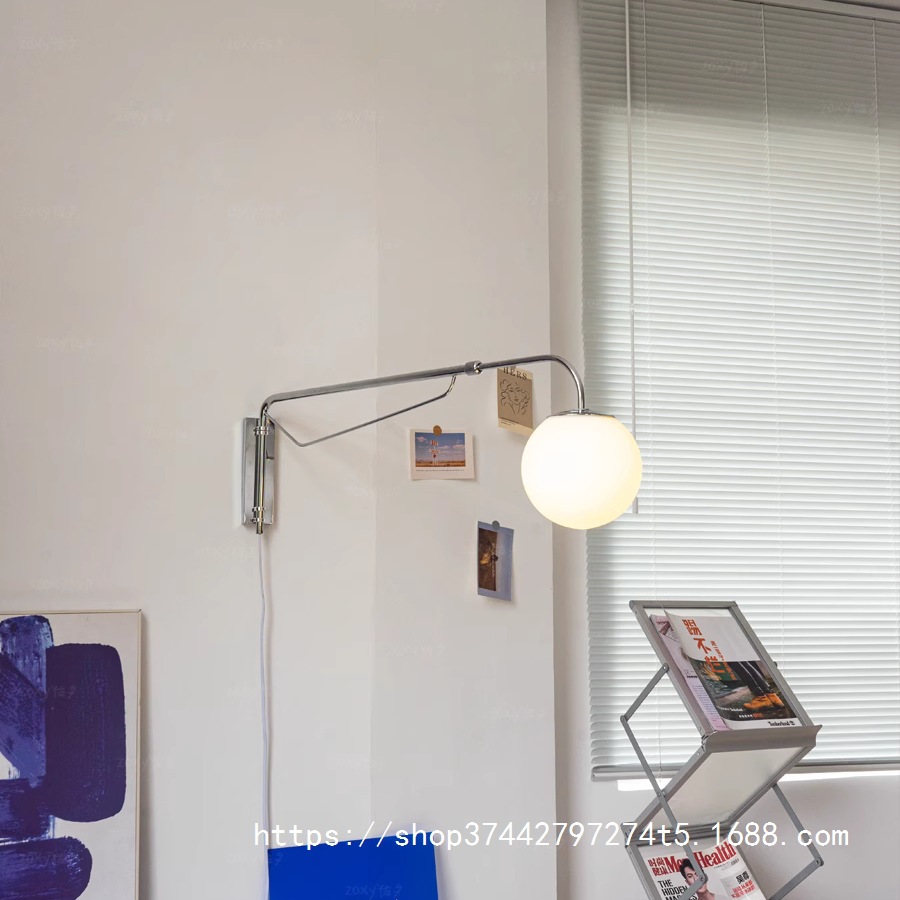 Bauhaus Lampu Dinding Lengan Panjang Teleskopik Tanpa Kabel Teleskopik Lengan Rocker Kamar Tidur Nordic Lampu Dinding Ruang Tamu
