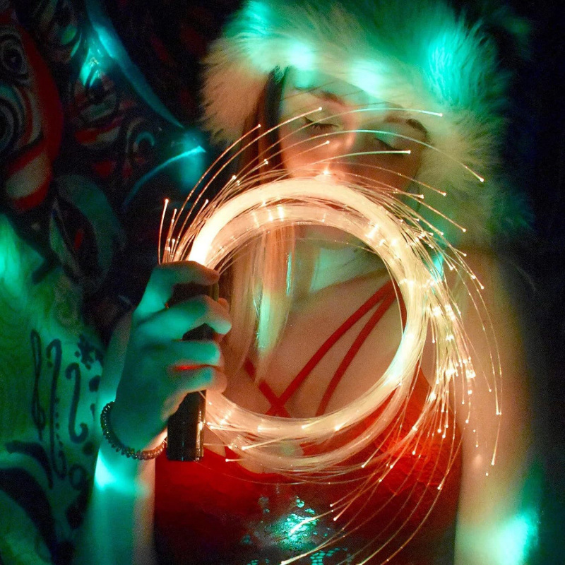 Malam Malam Gelas Tangan Bercahaya Cambuk Kulit Bar Alat Peraga Panggung Serat Optik Cambuk LED KTV