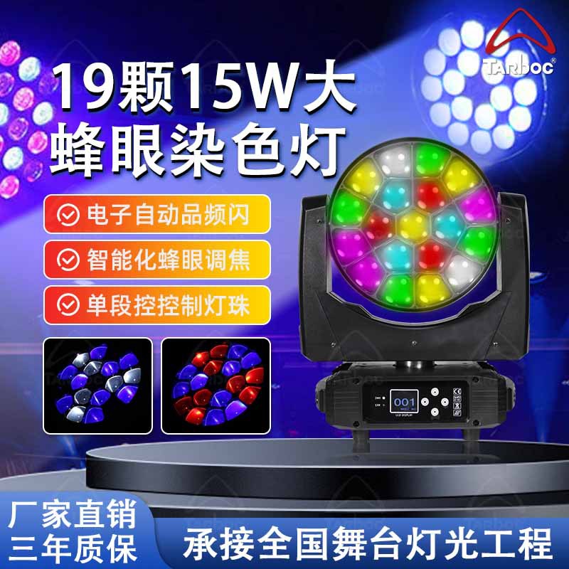 19 buah 15W lampu sorot panggung led warna-warni bar panggung celup warna penuh fokus mata lebah kepala bergoyang