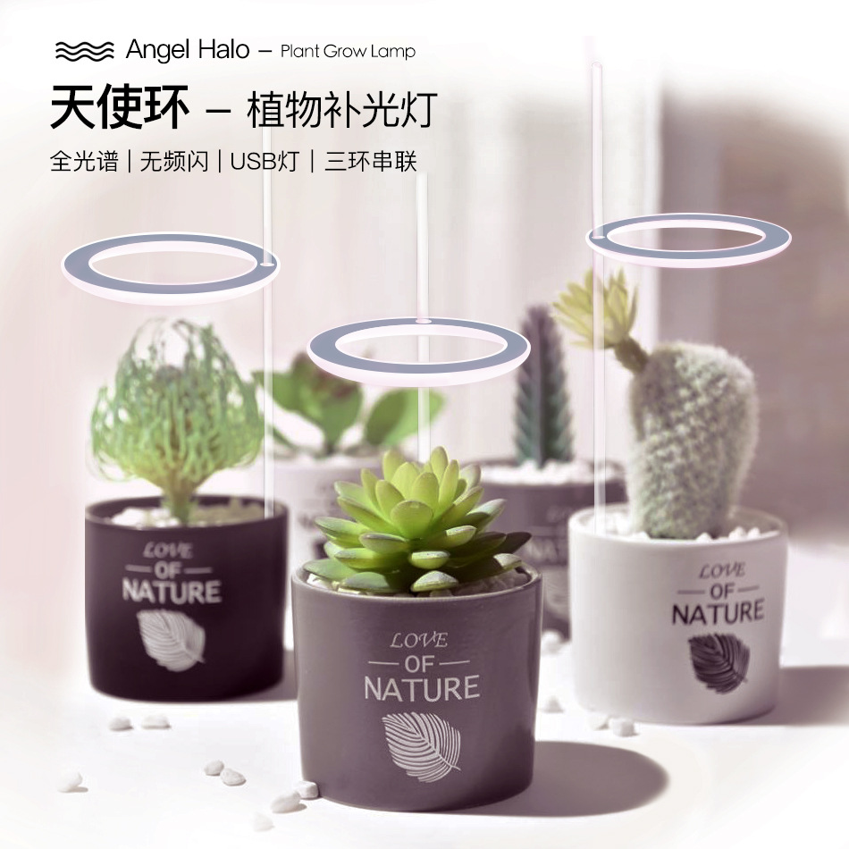Lampu pertumbuhan tanaman cincin malaikat, tiga kepala seri led dalam ruangan tanaman rumah tangga mengisi cahaya mewarnai spektrum penuh usb