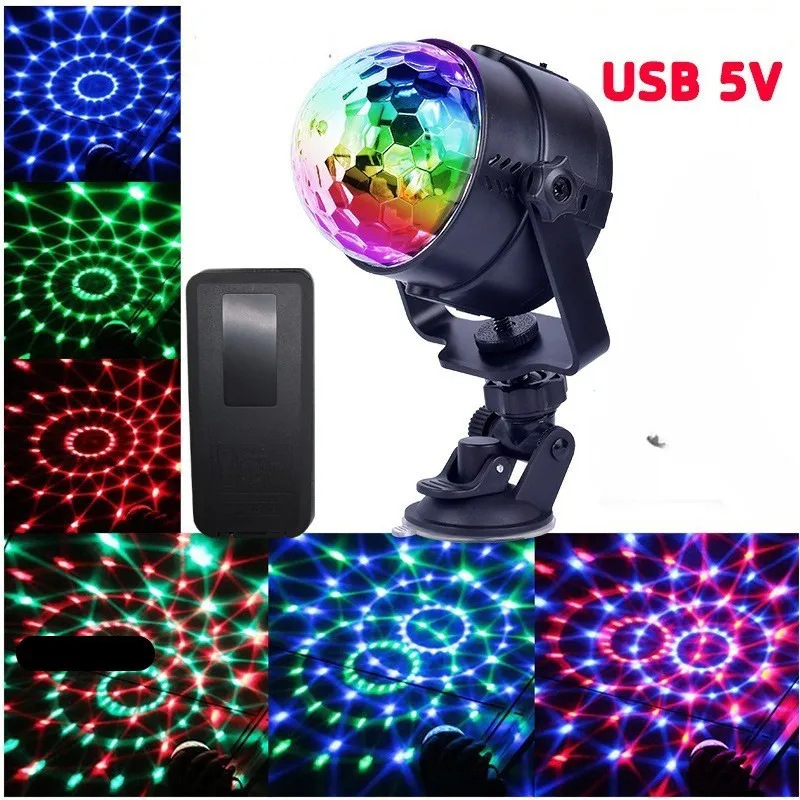 Lampu bola ajaib USB 5V mobil Mini, lampu bola ajaib untuk mobil Mini, lampu sorot putar warna-warni, lampu suasana bola ajaib kecil