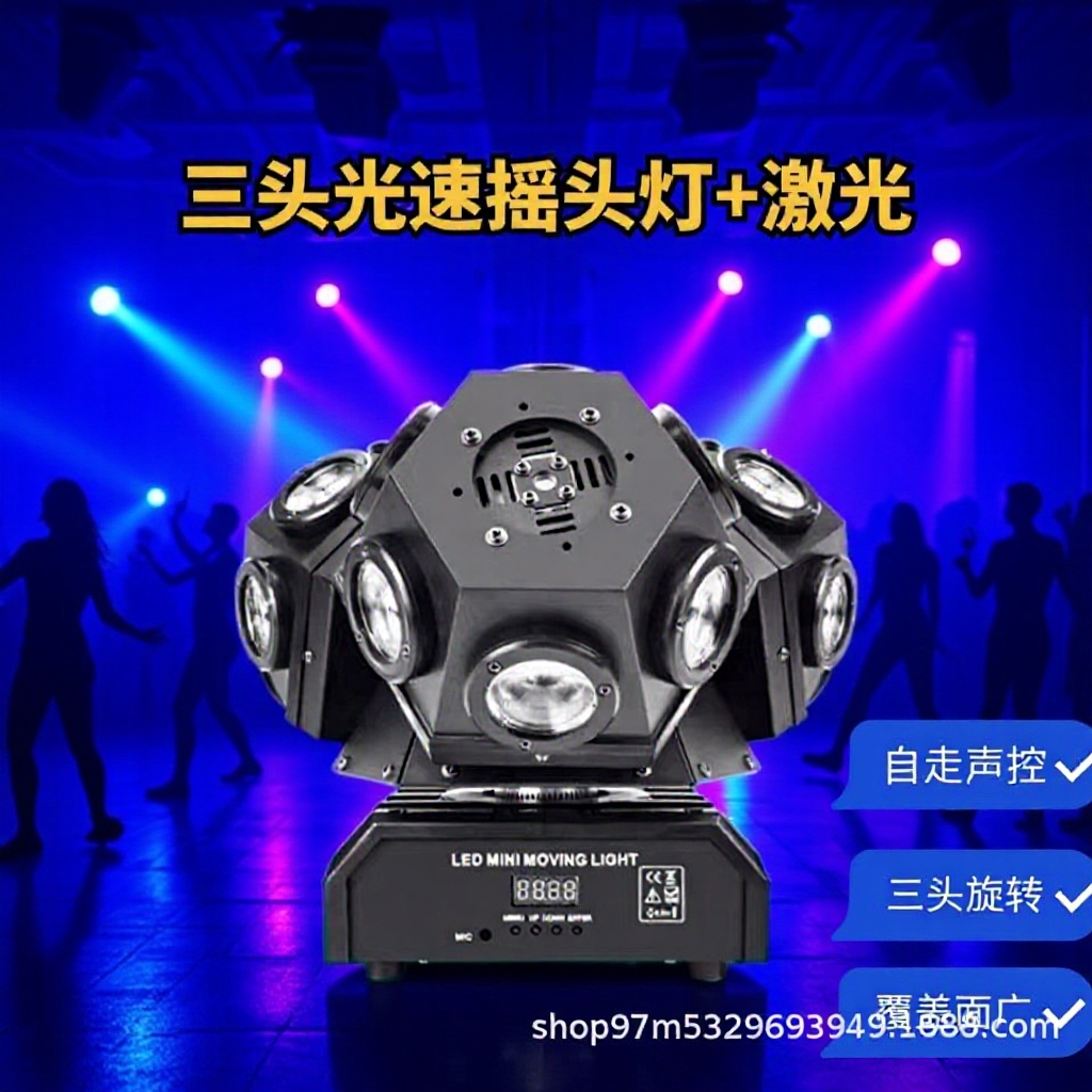Lampu sorot panggung 18 tiga kepala bergoyang, cahaya laser led PAR kinerja pernikahan bar KTV kontrol suara flash