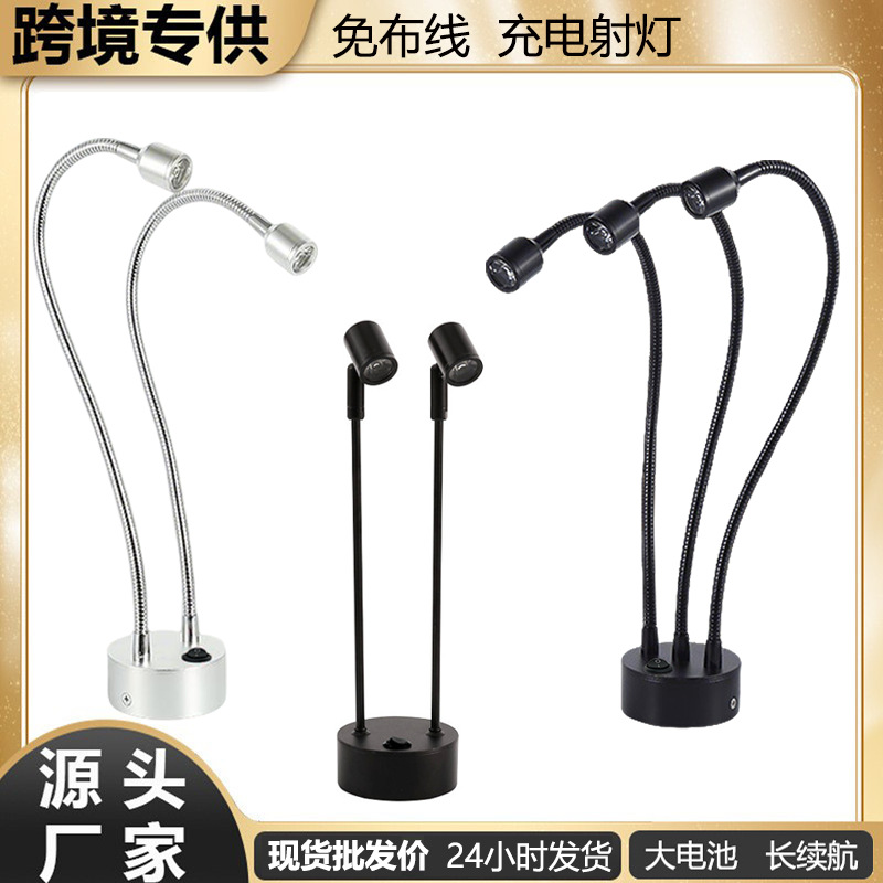 Lampu meja bar LED dapat diisi ulang, lampu meja kabinet perhiasan lampu sorot kepala ganda tiang tinggi atmosfer bar isi ulang