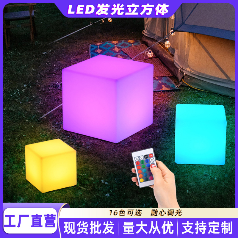 Lampu LED kubus bercahaya warna-warni dekorasi lampu malam bangku bar lampu meja halaman luar ruangan bangku bercahaya lampu persegi