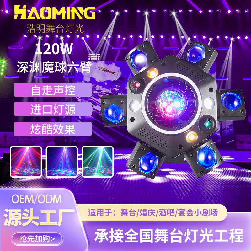 Bola Ajaib Led Abyss Enam Lengan Pengontrol Suara Lampu Sinar Kepala Laser Lampu Sorot Berwarna-warni Lampu Panggung KTV Bar