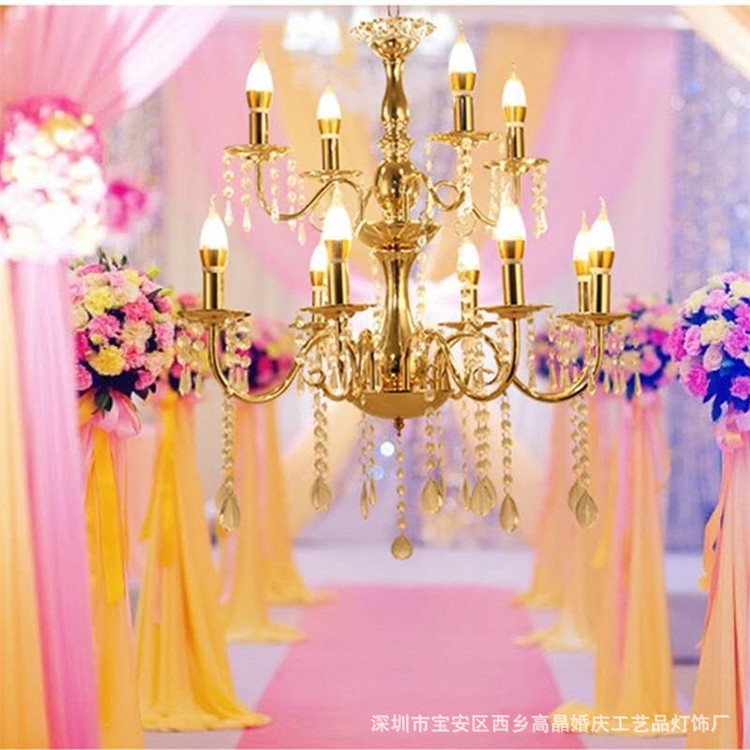 Pasokan langsung pabrik properti pernikahan panggung upacara paviliun Dekorasi pernikahan gaya Eropa besi elektroplating kristal langit-langit lampu dekoratif