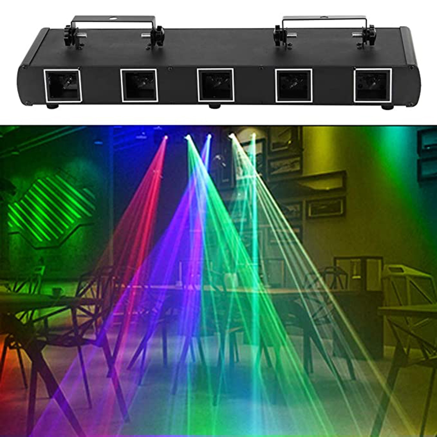 Lampu laser lima kepala lintas, cahaya panggung DJ disko bar KTV garis lima warna merah hijau biru kuning hijau