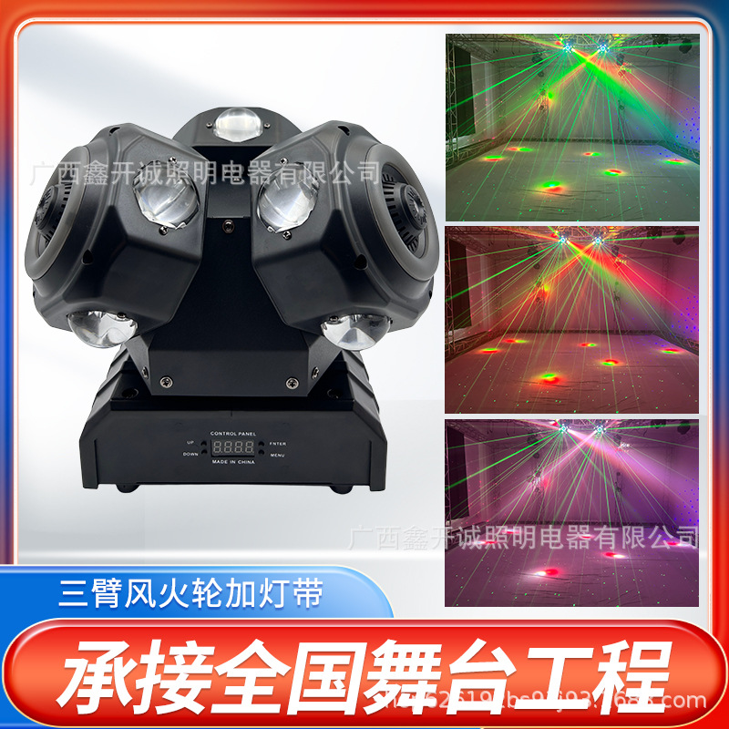 Lampu panggung KTV, alat penerangan kepala bergoyang kepala lampu laser kontrol suara bar ringan tiga lengan roda panas plus sabuk ringan