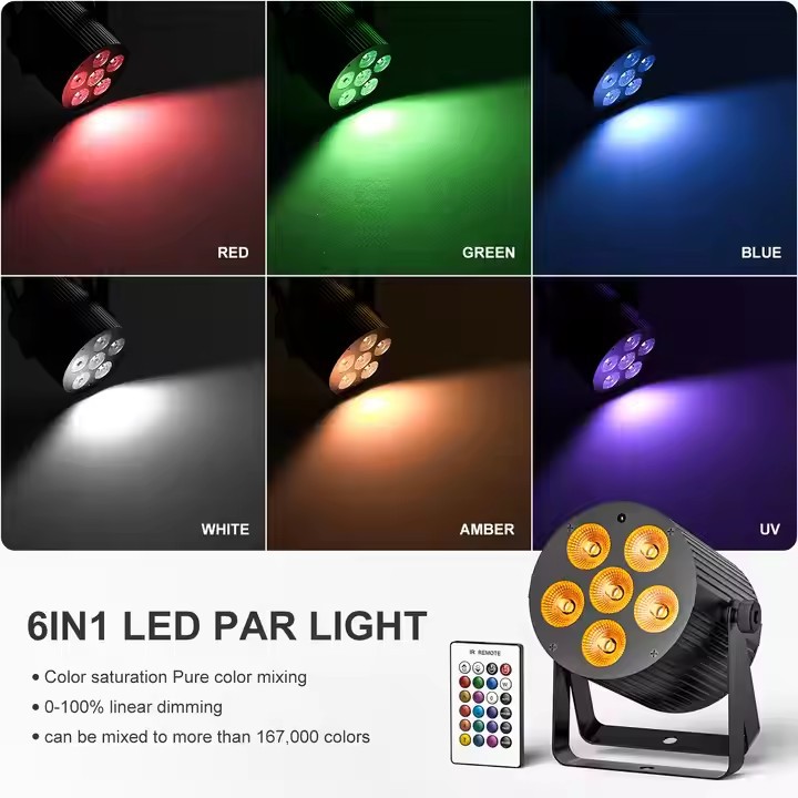 Lampu Par Baterai Nirkabel 6-in-1 LED Remote Control