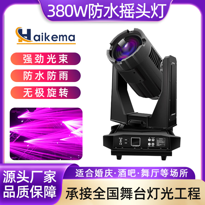 Lampu besar bergerak tahan air 380W, lampu panggung kinerja luar ruangan, lampu sorot kamar pribadi, peralatan pencahayaan KTV