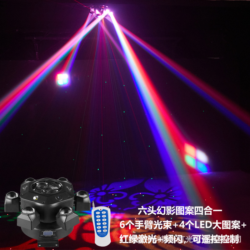 Lampu Sorot kepala bergerak cahaya laser enam lengan lampu panggung lampu laser enam lengan King Kong kecil empat dalam satu pola UFO enam-kepala