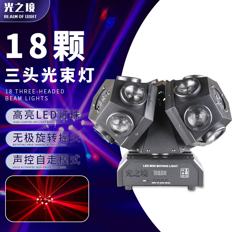 Spot Tersedia Lampu LED Lampu Kilat Lampu Kilat KTV Berputar Berwarna-warni 18 Lampu Sinar Tiga Kepala Lampu Panggung