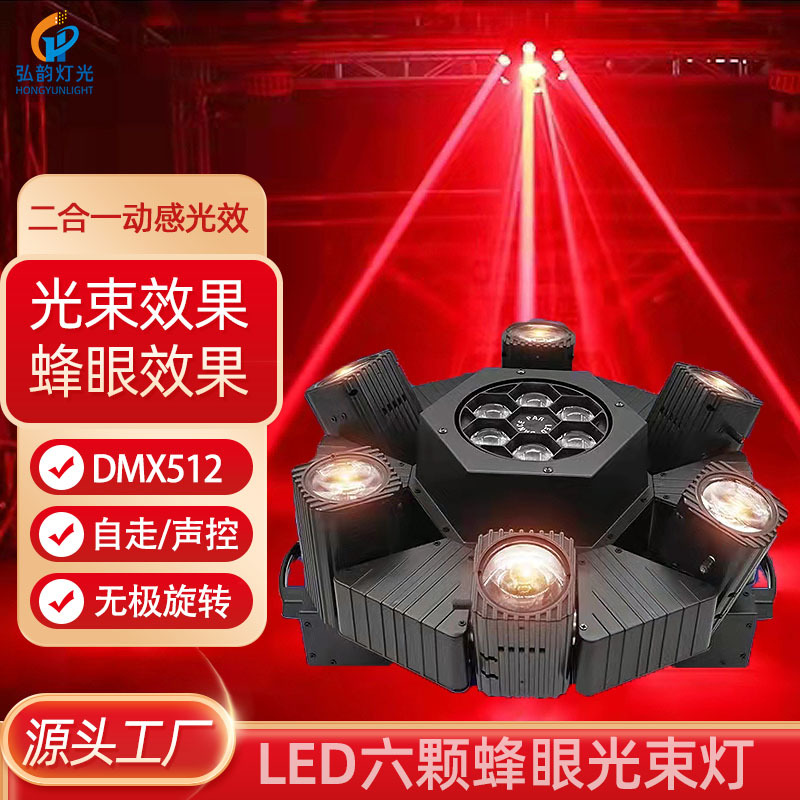 Lampu LED enam-lebah LED baru lampu sorot enam mata electrodeless lampu mata lebah berputar warna-warni lampu pemindai bar ktv