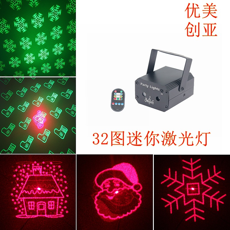 Chuangya lampu laser 32 multi gambar, lampu laser dapat diisi ulang USB suasana gas bar disko lampu panggung kamar pribadi