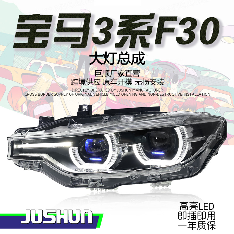 适用于13-18款宝马3系F30大灯总成改装透镜LED勺子日行灯转向激光