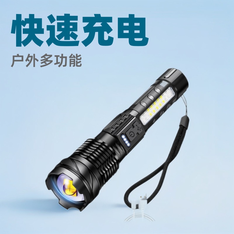 Senter cahaya kuat LED yang dapat diperbesar terlaris Amazon lintas batas sumber multi-cahaya paduan aluminium dengan lampu kerja COB